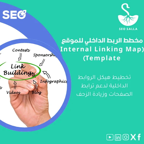 - قالب قابل للتعديل على Excel وGoogle Sheets مع أعمدة جاهزة: صفحة المصدر، صفحة الهدف، نوع الرابط (نص، قائمة، بانر)، وأولوية الربط.